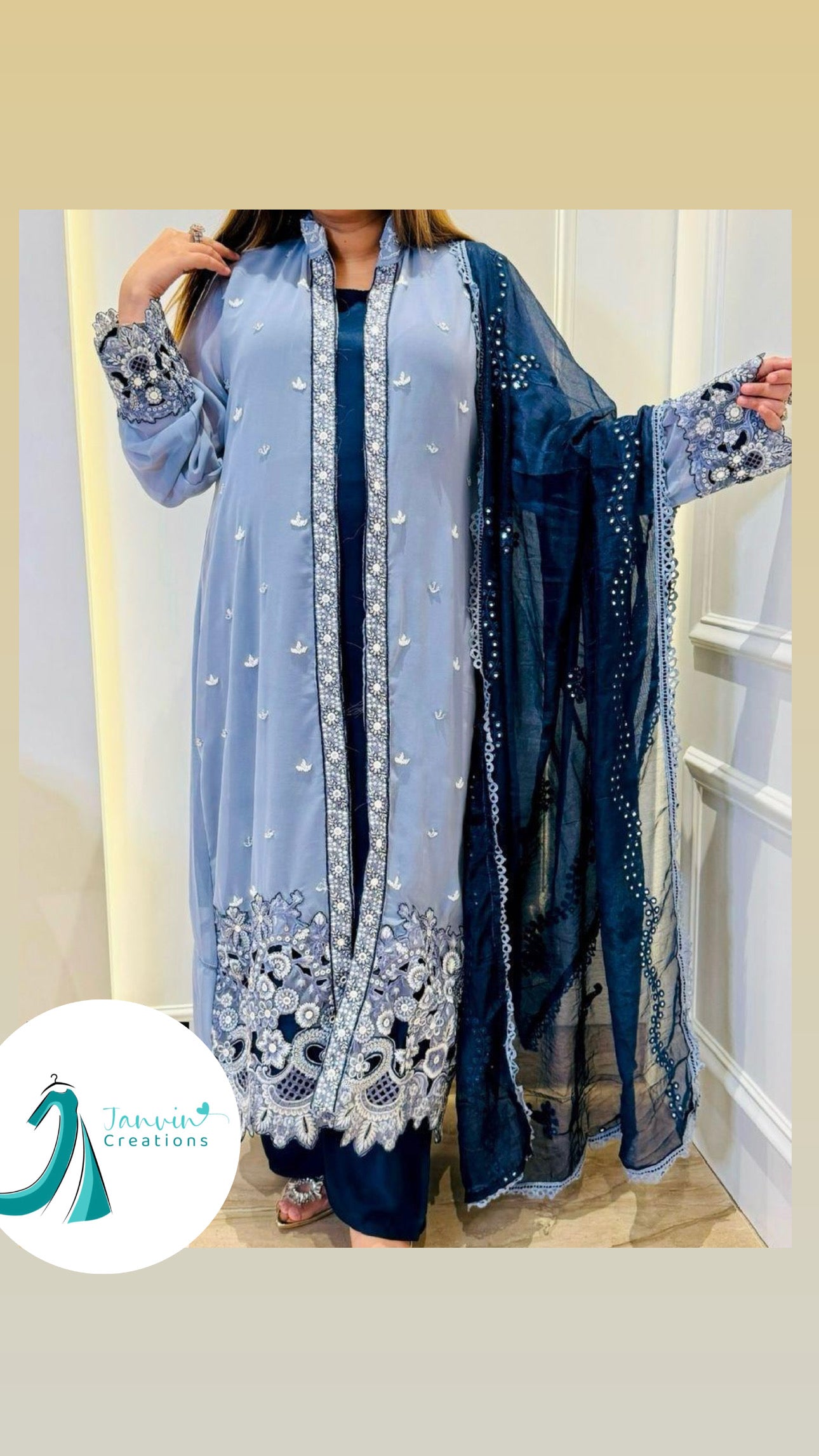 thread and sequence work shurg and duptta. Its and 4pc suit (inner, plazo, embroidered jacket and duptt)