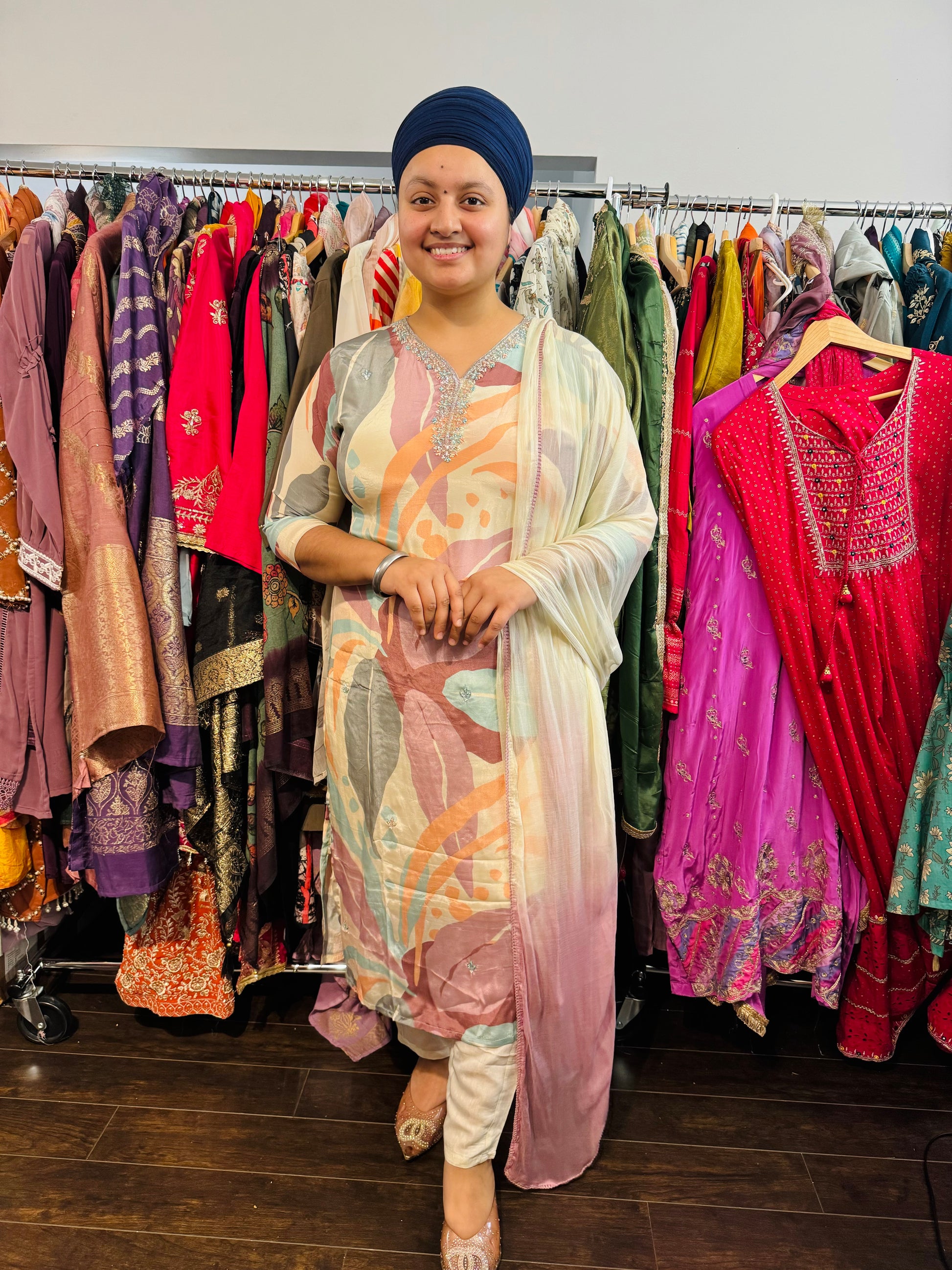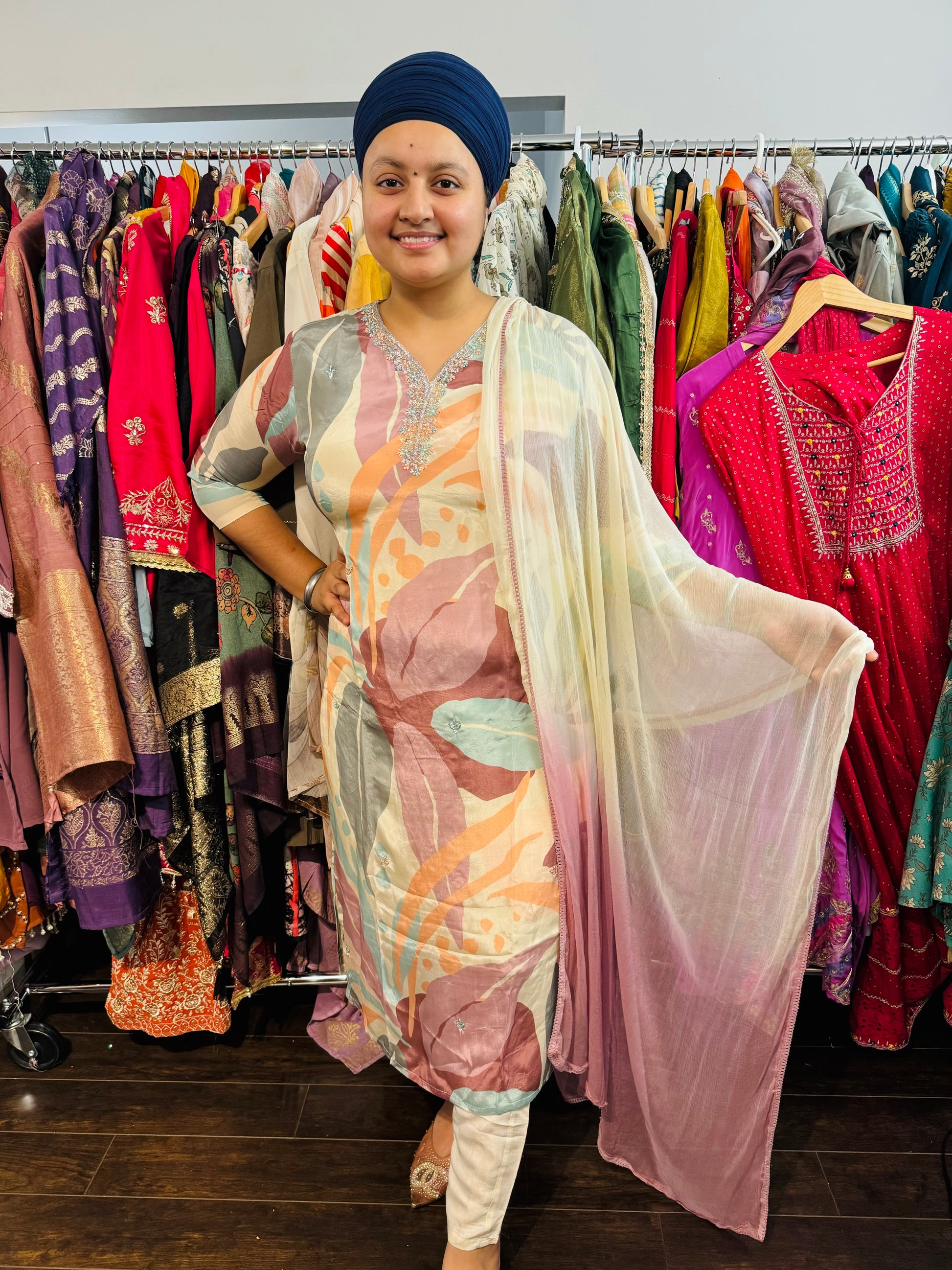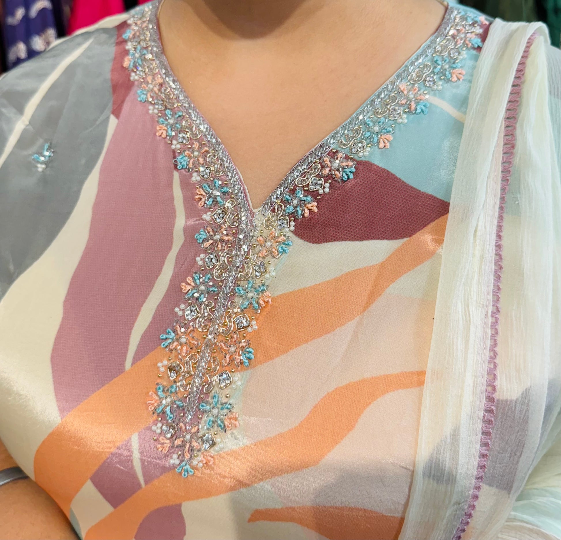 Increase quantity for Printed crepe suit